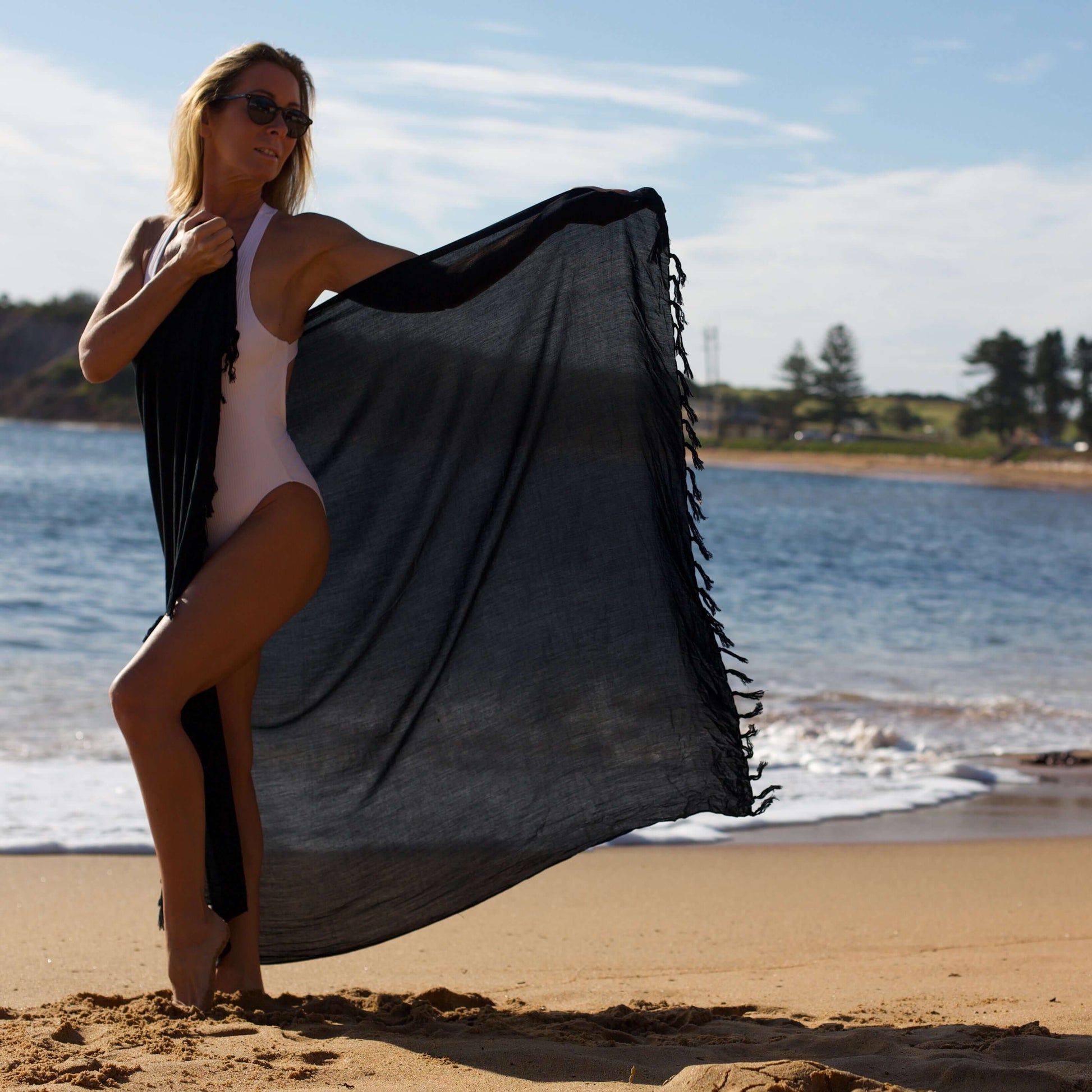 Introducing our best-selling black beach sarong, the perfect accessory for creating mindful memories on your next outdoor adventure.